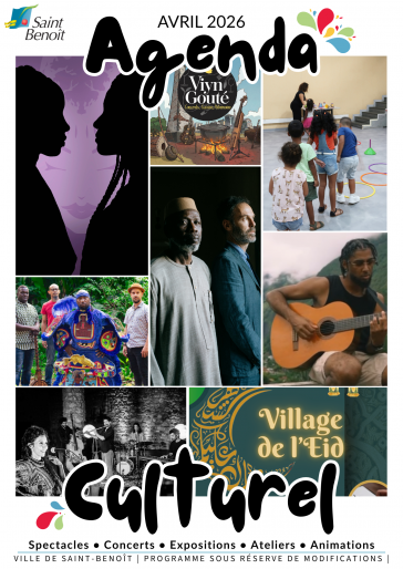 Découvrez l’agenda culturel du mois d’avril à Saint-Benoît ! Tout au long du mois, profitez d’une programmation variée pour petits et grands : ateliers, spectacles, expositions et animations vous attendent. Venez partager des moments de découve...