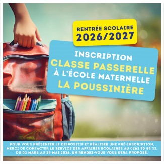 Pour vous présenter le dispositif et réaliser une pré-inscription, merci de contacter le service des affaires scolaires au 02 62 50 88 32, du 02 mars au 29 mai 2026. Un rendez-vous vous sera proposé.