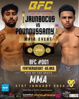 Jérémy Pounoussamy sera en tête d’affiche d’un combat international de MMA ce samedi 31 janvier à Maurice. Un rendez-vous majeur où il disputera la ceinture face au prodige mauricien Zayan Jaunbocus, dans un affrontement qui s’annonce intense et spectaculaire.