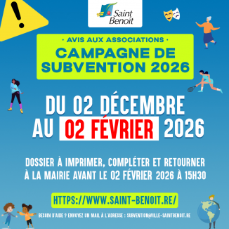 Chaque année, la Municipalité apporte son soutien à un certain nombre d'associations qui en font la demande sous forme de subventions. La campagne a débuté le 02 décembre 2025 et la date de clôture est reportée au 02 février 2026.